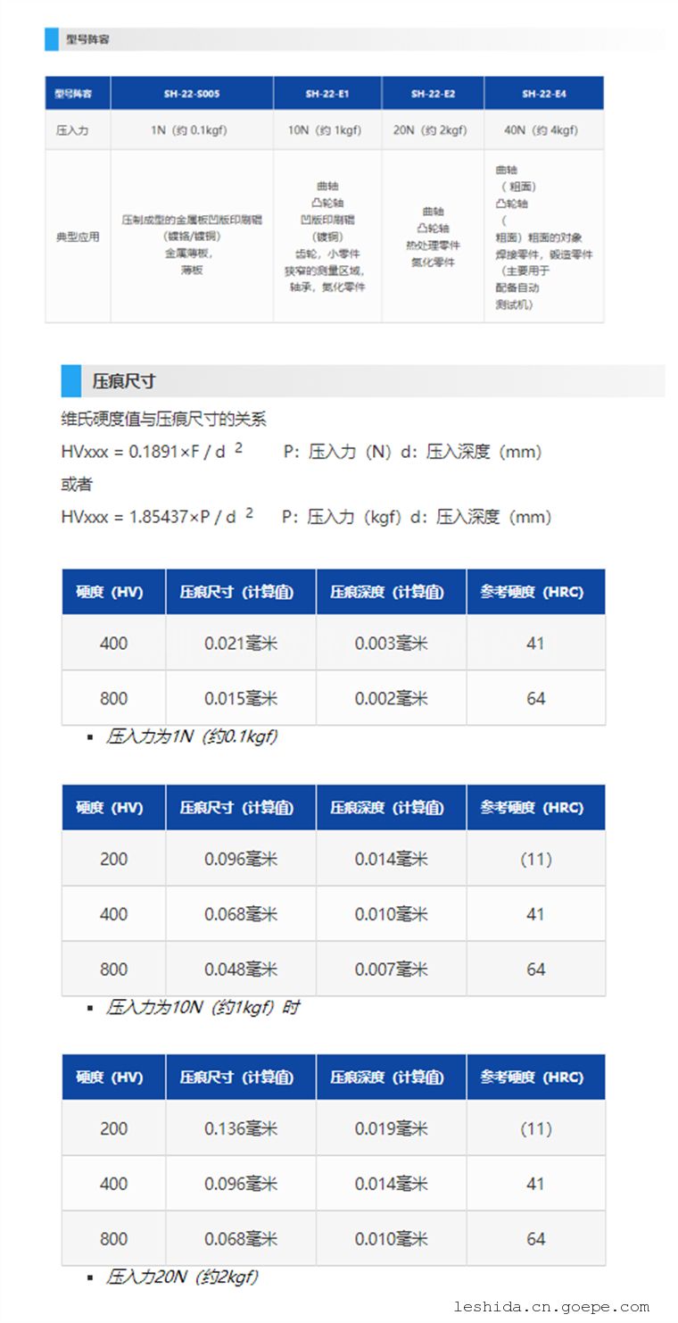·压痕很小(约0.1mm2)——由于压痕不明显,可以用于完成成品的检查